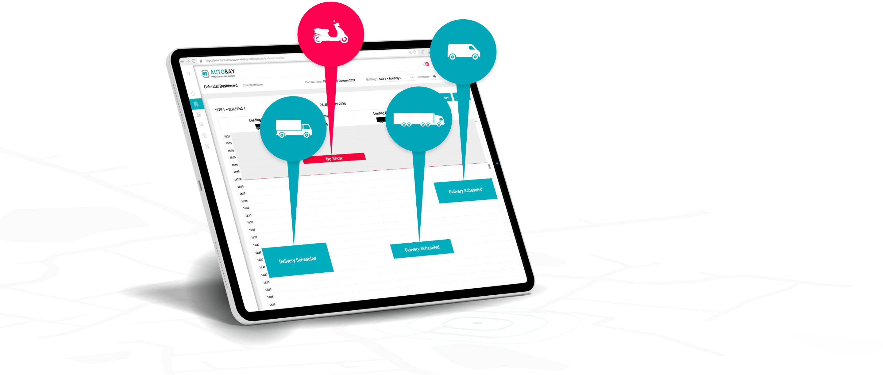 AUTOBAY is a SaaS platform for managing deliveries within high-use, multi-tenant sites where loading bay space is at a premium.